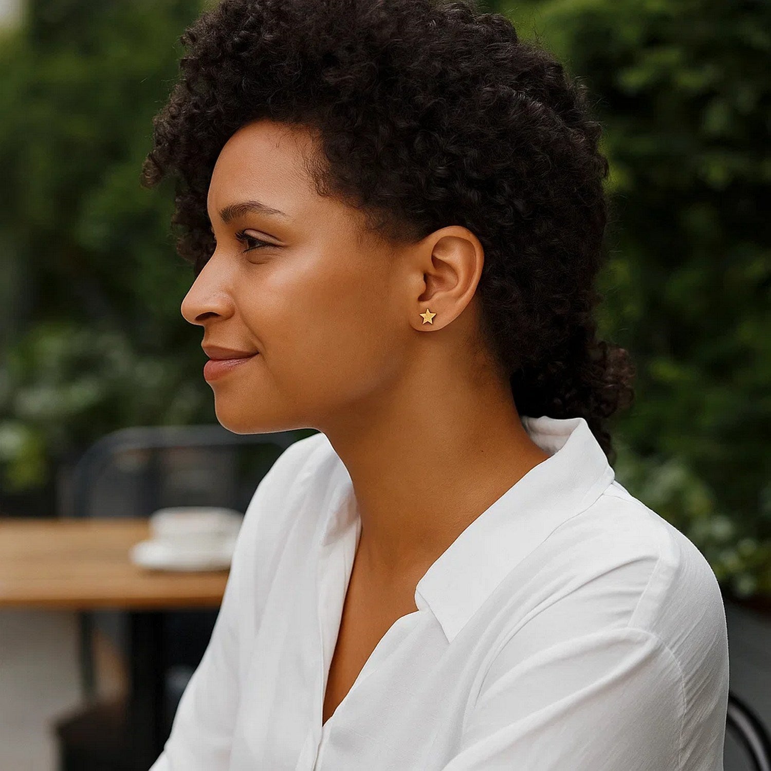14k Yellow Gold Post Earrings with Stars(6.5mm)