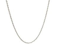 This classic chain is crafted in gleaming sterling silver with rhodium polish. Featuring a diamond cut rope type design, it has a width of 1.4 millimeters and is secured with a lobster clasp.